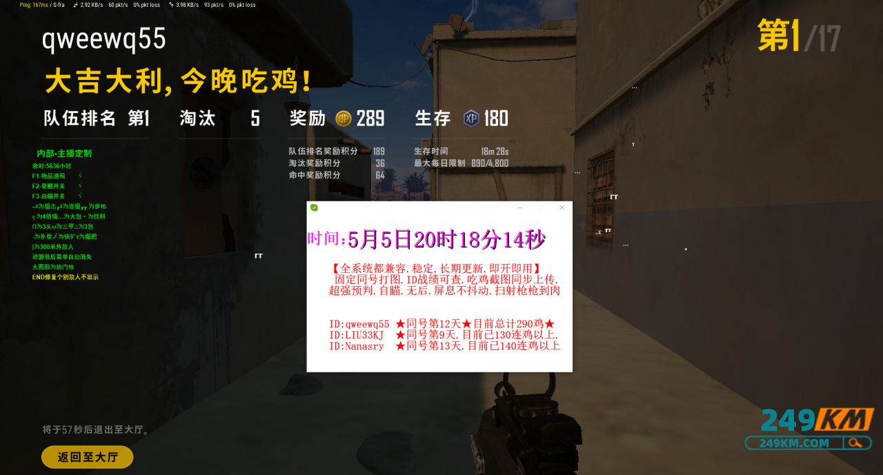 关注网盘同号.2个百鸡起步.1个300连鸡起步.稳定的雅痞 自己查下战绩就清楚了.